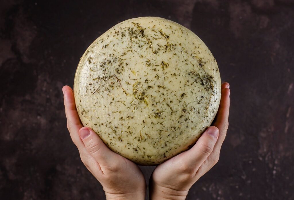 - 1 – 1,5metų sūriai bus kieti, skonis dar labiau išreikštas, sūresni, matosi susiformavę baltymų kristalai, pjaunant riekutė neelastinga, lūžinėja, tokį sūrį geriau skaldyti gabaliukais.